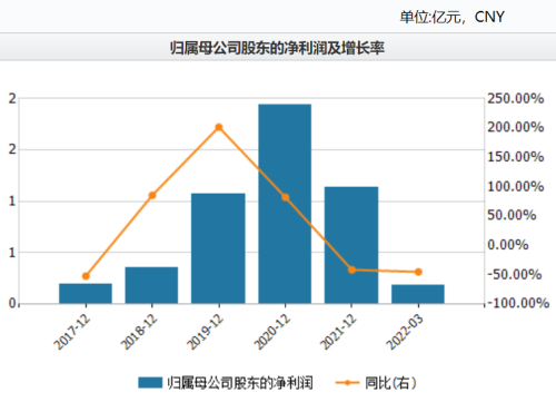 这种表现不是偶然的。2021年,公司营业收入13亿元,同比增长5.56%,归母净利润1.14亿元,同比下降41.33%,扣非净利润1.06亿元,同比下降42.07%。
