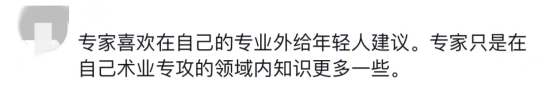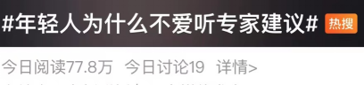 还有个别专家,丝毫不顾忌年轻人的感受,放弃学术中立原则,过度为商业利益代言。这种抛弃职业操守的行为,让年轻人对专家的排斥与日俱增,以至于拉低了年轻人对整个专家群体的信任和期待。