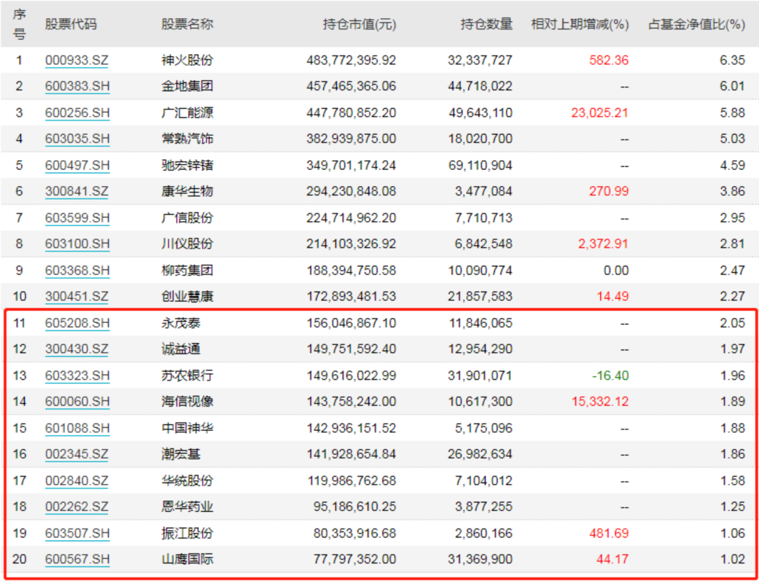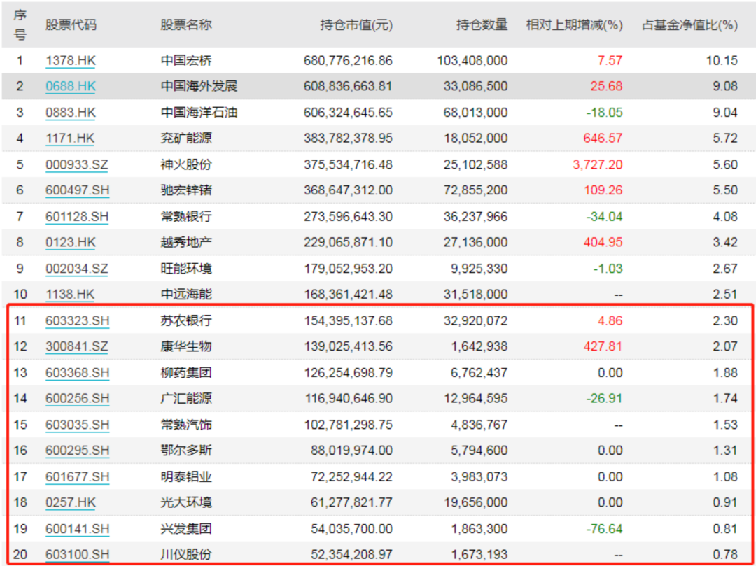 其中,常熟汽饰去年下半年获丘栋荣增持254.72%持仓股份,期末持股达534.14万股,持股市值达1.13亿元。中远海能为新进持仓股票,广汇能源、金地集团获不同程度增持,而旺能环境、南山铝业被减持。