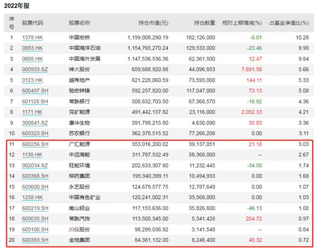 在基金年报中,丘栋荣坦言,2022年权益投资要取得绝对收益难度大,在行业上不仅要避开跌幅巨大的受损行业,更要偏向业绩强韧的能源资源类公司。同时,股票盈利和估值双重挤压的年份,风格上要重视防守特征较为突出的价值股。