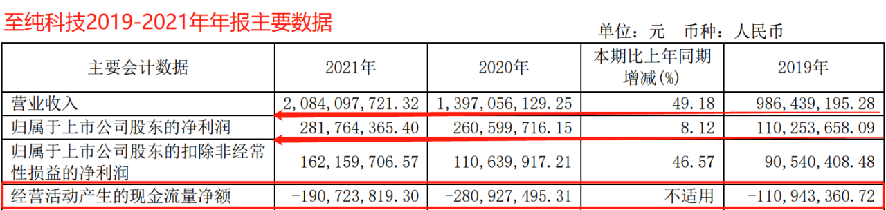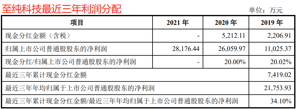 至纯科技对股东的现金回报也显得力不从心。2019年度、2020年度,该公司分别向全体股东现金分红2206.91万元和5212.11万元,2021年没有进行现金分红。