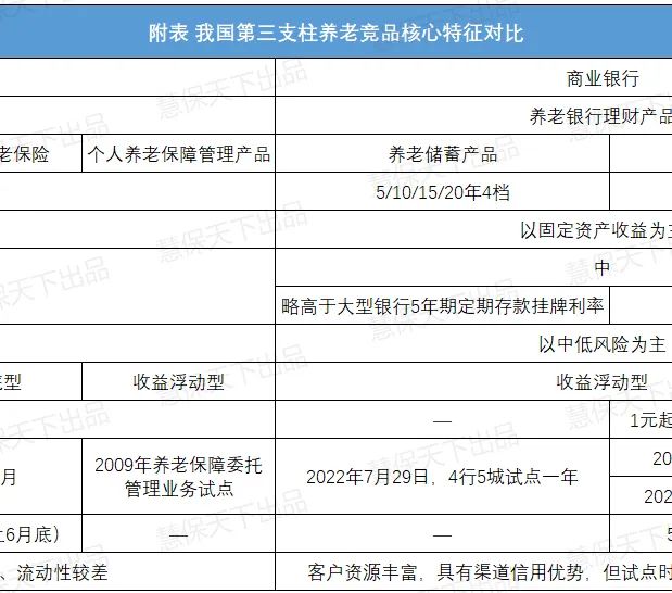 附表 我国第三支柱养老竞品核心特征对比