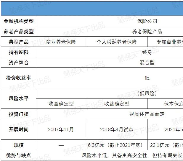 目前,保险业在第三支柱市场的主要产品包括:商业养老年金保险、个人税延商业养老保险、专属商业养老保险产品、个人养老保障管理产品。