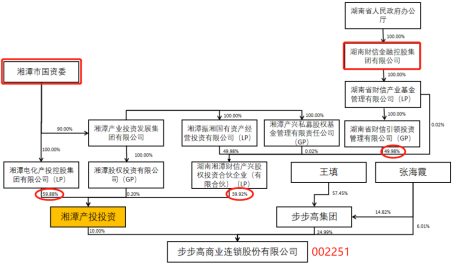 从持股链条上看,湘潭市国资委是湘潭产投投资的第一大出资人、实际控制人,湖南省政府办公厅100%控股的湖南财信金控是第二大出资人。也就是说,接下来为步步高站台的除了湘潭市国资,还有湖南省政府。