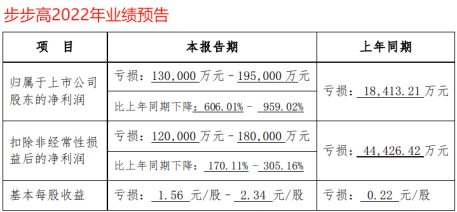 1月15日,步步高同时披露了《2022年业绩预告》,预计净利润为亏损13亿元至19.5亿元,预计扣非净利润为亏损12亿元至18亿元。2021年,该公司分别实现净利润和扣非净利润-1.84亿元和-4.44亿元。