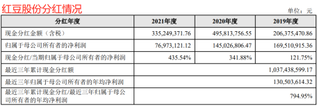 此外,《电鳗财经》关注到,红豆股份十分重视现金分红,该公司最近三年累计现金分红10.37亿元,而其最近三年实现的归属于母公司所有者的年均净利润为1.31元,累计现金分红占年均净利润的比例为794.95%,现金分红比例较高。