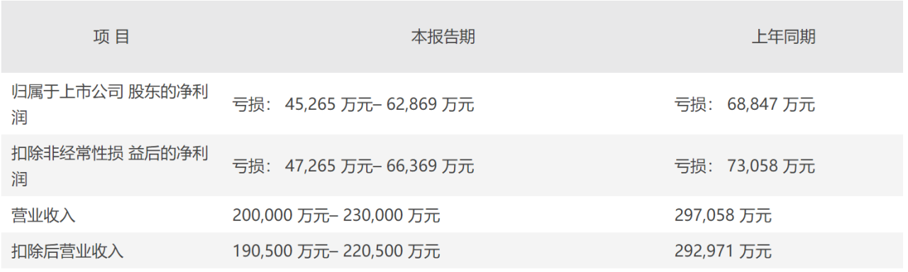 净利润预计亏损4.53亿元–6.29亿元