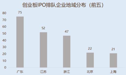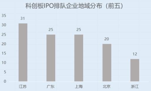 科创板156家排队企业中,江苏存量IPO企业数量最多,为31家。其次为广东和上海,均为25家,北京和浙江分别以20家、12家紧随其后。在332家创业板排队企业中,则是广东存量最多,为75家。其次为江苏52家,浙江47家,北京22家,上海21家。北交所排队企业中,江苏企业存量最多,为13家。其次为北京10家,浙江10家,广东8家,山东8家。