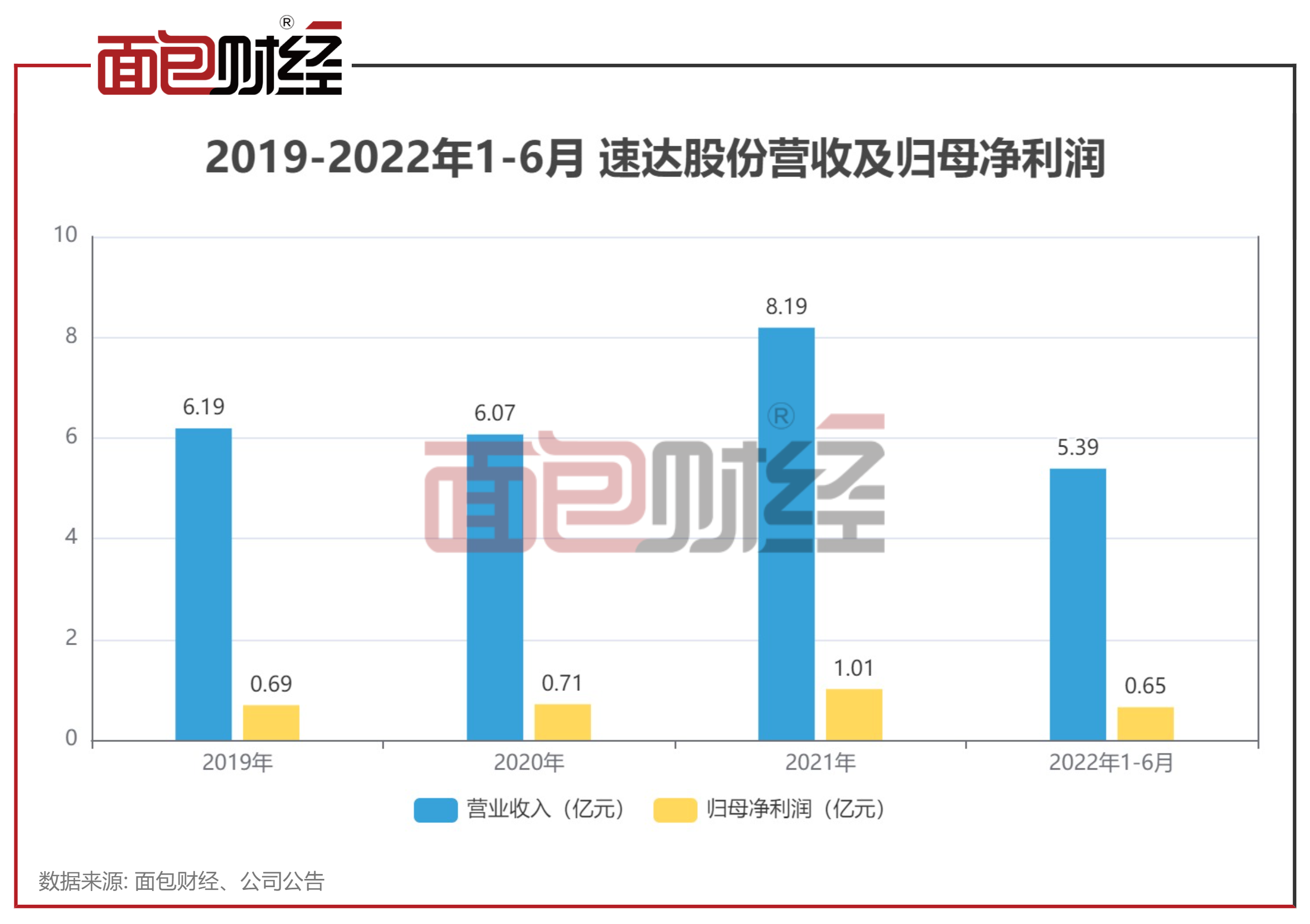 财务数据方面,2022上半年,速达股份实现营收5.39亿元。此前2019-2021年分别实现营收6.19亿元、6.07亿元及8.19亿元。报告期内,公司归母净利润分别为0.69亿元、0.71亿元、1.01亿元及0.65亿元。受益于下游煤炭市场的火热,公司业绩得到显著增长。