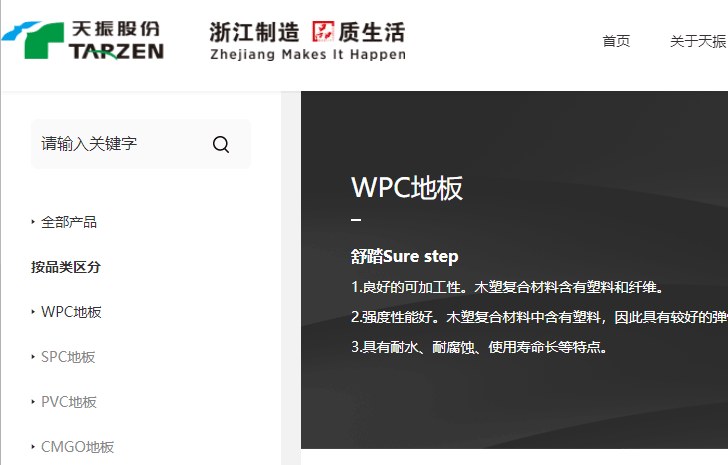 资料显示,天振股份创建于2003年,注册资本人民币玖仟万元。公司是国内新型PVC复合材料地板研发、生产及出口的龙头企业之一,主营业务为新型PVC复合材料地板的研发、生产和销售,具体产品包括木塑复合地板(WPC地板)、石塑复合地板(SPC地板)、玻镁地板(MGO地板)、塑晶地板(LVT地板)等。