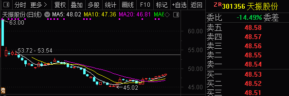 公司于去年11月14日在创业板上市,迄今为止不足三个月。股价表现上,天振股份上市首日即跌破发行价,此后股价就一路下行,最低时达到45.02元。近期股价则有所回升,截至1月31日收盘,公司股价为48.53元,总市值达到58.2亿元。