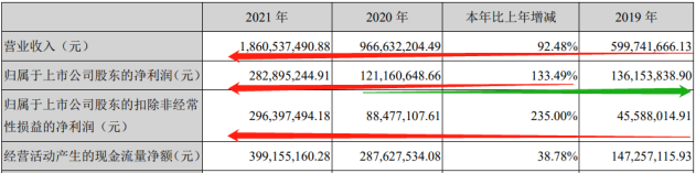 2019年至2021年,星源材质保持着良好的业绩增速。该公司除了2020年净利润同比下降,其他业绩指标均保持着大幅跨越的节奏。