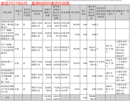 问题在于,星源材质还有其他多个投资项目在建,通过募资或自筹已经解决资金问题。