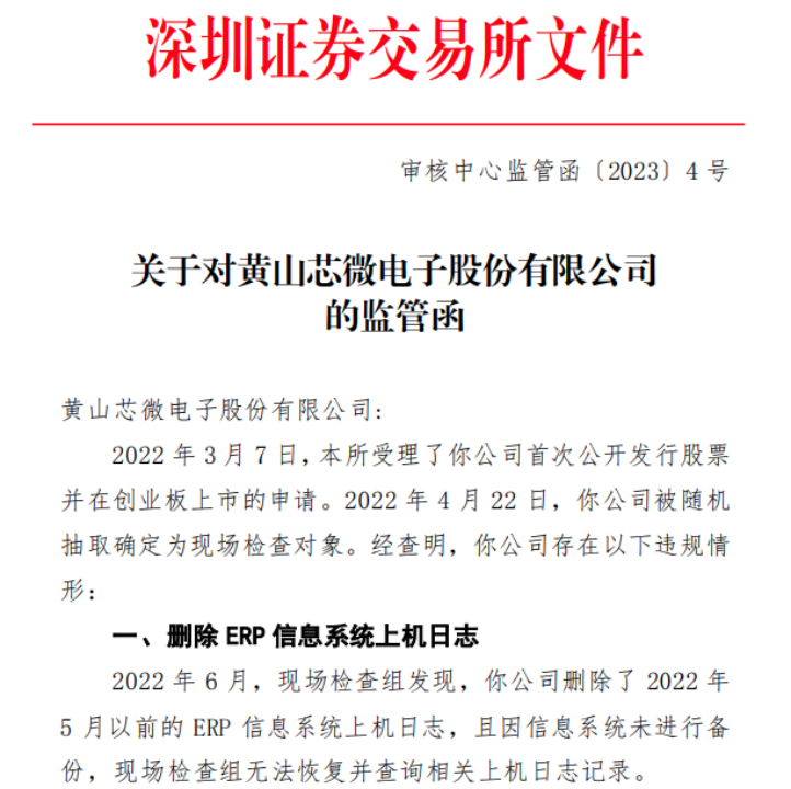 2月20日,深交所上市审核中心对拟IPO企业黄山芯微电子股份有限公司(芯微电子)下发监管函。