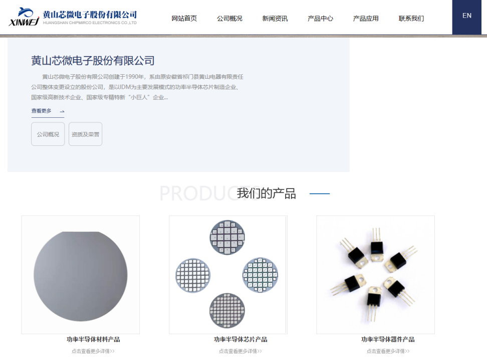 公开信息显示,黄山芯微电子股份有限公司创建于1990年,系由原安徽省祁门县黄山电器有限责任公司整体变更设立的股份公司,专注于功率半导体芯片、器件及材料研发、生产和销售。