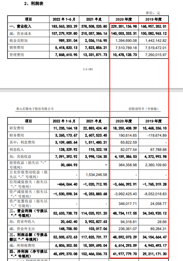 2022年9月底、11月底,芯微电子分别披露了其半年报更新后的招股说明书和首轮问询的回复。其中,芯微电子2019-2020年度的财务数据和财务指标部分多处进行楷体加粗,即财务数据更正。