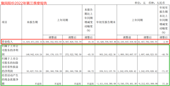 但2022年豫园股份的日子就不好过了,前三季度营业收入微增2.99%,但净利润和扣非净利润大幅下滑了46.79%和71.07%。