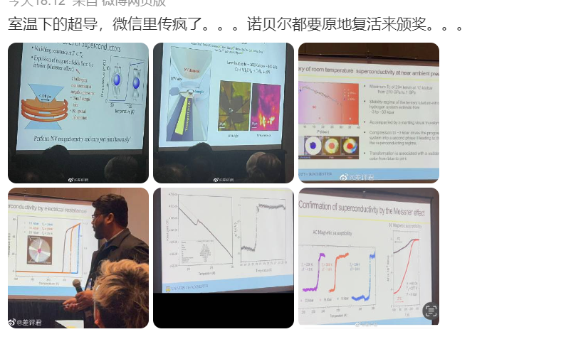 另外,也有A股董秘解读今天的美国室温超导技术传闻:没啥太大产业化价值关系。仍然是1万倍大气压。只不过从200多万倍大气压降到了1万倍而已。实现零下200度比实现1万倍大气压容易和便宜多了。