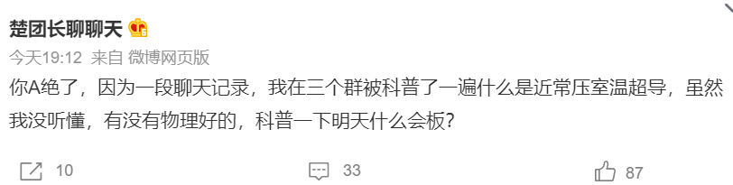 兄弟姐妹们啊,A股股民又沸腾了,各个炒股群都在说一个概念——室温超导!