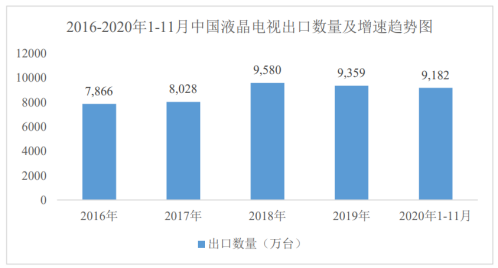 图2.近年中国电视机出口数量图