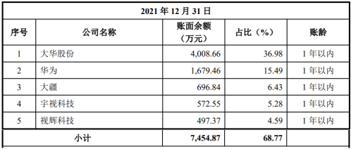 招股书显示,中润光学应收账款账龄主要在1年以内,应收账款质量较好。2021年营收账款账面余额前五名客户约7454.87万。
