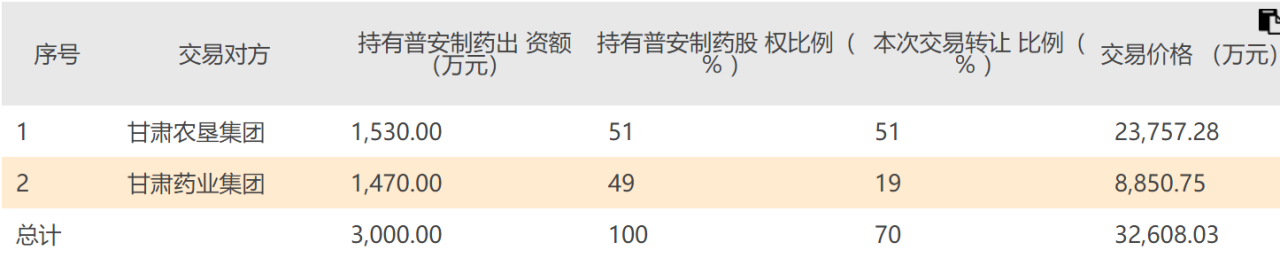 9月26日,甘肃陇神戎发药业股份有限公司(以下简称陇神戎发)发布公告披露了重大资产重组,陇神戎发拟通过支付现金方式收购甘肃药业集团和甘肃农垦集团持有的普安制药70%的股权,此次交易合计对价为32608.03万元。