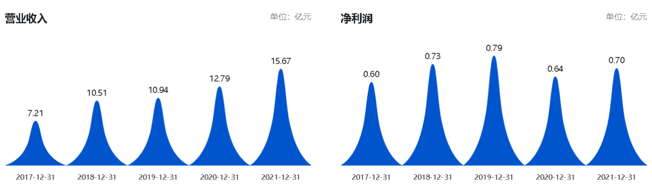 《电鳗财经》关注到,2019年-2021年,方盛制药实现营业收入分别为10.94亿元、12.79亿元、15.67亿元,同期净利润分别为0.79亿元、0.64亿元、0.70亿元,该公司的营业收入稳步增长,但净利润存在小幅波动。