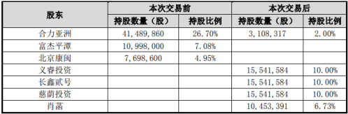 本次股份转让总价款为6.61亿元,对应每股转让价格为11.58元,不低于本协议签署日前一个交易日上市公司股票收盘价的90%。股份转让完成后,合力亚洲剩余持股2%。