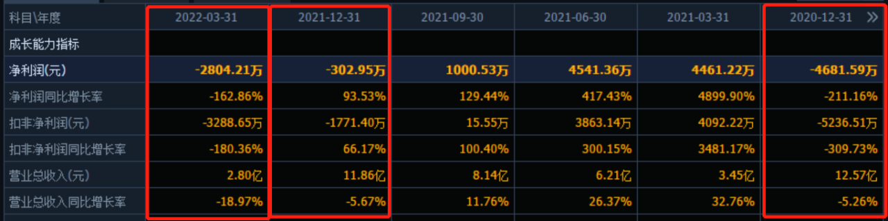 年报显示,安奈儿2019年实现营业收入约13.27亿,同比增长9.41%,归母净利润约4211.73万,同比增长下滑49.49%;该公司2020年实现营业收入约12.57亿元,同比下降 5.26%,归母净利润亏损4681.59万元;该公司2021年实现营业收入约11.86亿元,同比下滑5.67%,归母净利润亏损302.95万元。并且,该公司2022年一季度实现营收入月2.8亿元,同比增长下滑18.97%,归母净利润亏损2804.21万元,同比增长下滑162.21%。