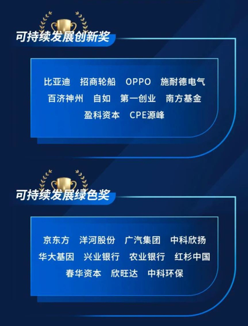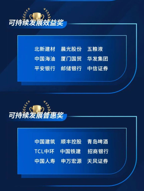其中,中兴通讯、长城汽车、中国神华、中国石化、华夏基金五家公司荣获可持续发展系列最高奖项——可持续发展贡献奖。