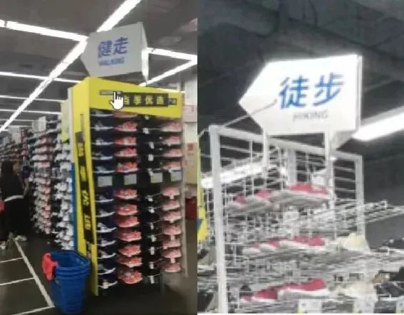 原告(左)与被告门店货架通道中的白色指示牌比对