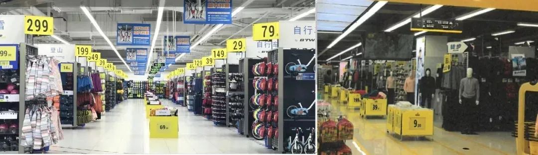 石景山法院经审理后认为,受反不正当竞争法保护的“装潢”需具备以下要件:一是该装潢应当具有独特风格,即具有一定的显著性;二是该装潢经由经营者在先持续使用及宣传推广,为消费者所知悉,具有一定影响力;三是由于该店面装潢同时具备显著性及影响力,从而使该装潢与其经营者之间形成了稳定的对应关系。 具体到本案,二原告主张其权利基础应为“店面整体装修装饰风格”及7大类共22个店面装潢元素形成的整体视觉效果。根据在案的门店照片、网友评论可证实迪卡侬门店装潢整体上呈现出厂房式装修以及商品分类及价格指示均十分醒目的极简工业风格,具有显著性。迪卡侬门店装潢经过二原告在先大规模持续的使用并伴随品牌宣传推广,已然为消费者所知悉,具有一定影响力。由于迪卡侬店面装潢同时具备显著性及一定的影响力,消费者已形成了较为统一的认知,从而使该门店装潢与迪卡侬品牌及其经营者之间形成了稳定的对应关系。 因此,二原告主张的迪卡侬门店装潢属于反不正当竞争法意义上应当予以保护的装潢,其具有提起本案诉讼的权利基础。双方当事人经营的商品均以户外运动商品为主,明显具有竞争关系。 本案最为关键的争议即在于双方经营的店铺装潢是否近似的问题。原告(左)与被告店面装修、装饰风格比对