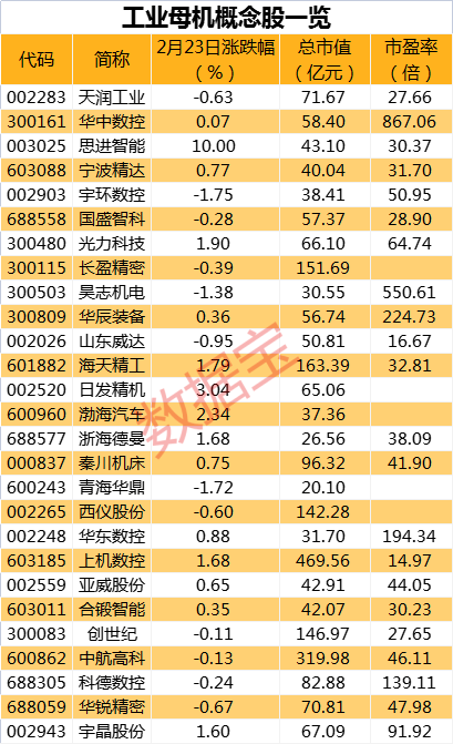工业母机概念股名单出炉